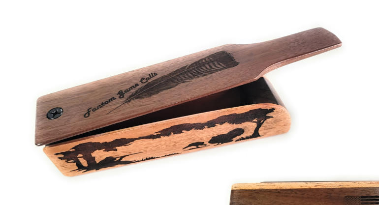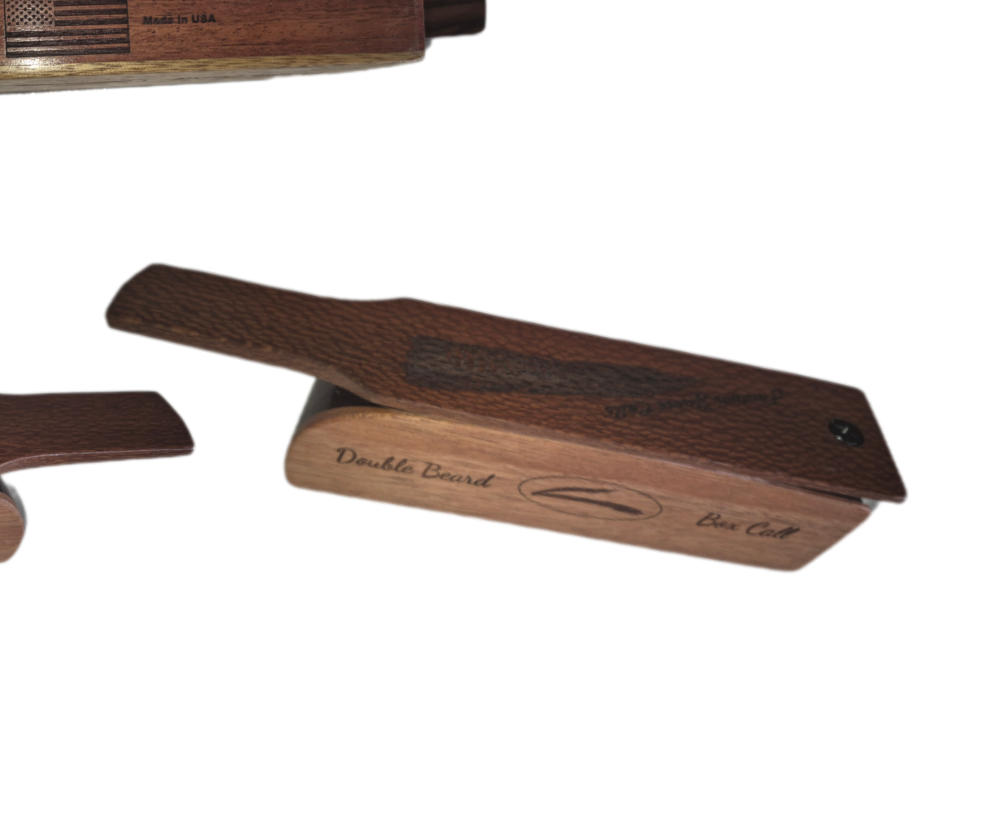 The Double Beard This is our best selling box call! Made and tuned to sound great in the field! Each side is tuned to a different pitch giving some variation to calling sequences.Calls come with laser engraving on all sides and engineer’s chalk. Paddle 1 ⅞”x9”, Box 1 ⅞”x6”