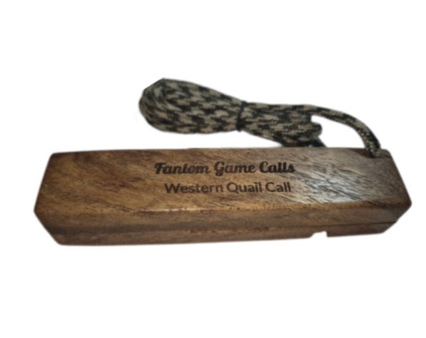 The Fantom Western Quail Call works with Valley Quail and Gambel’s Quail. For the Valley Quail remember Chi-ca-go and Gambel’s Quail Chi-ca-ti-go for their assembly call. Each call comes with its own lanyard.
