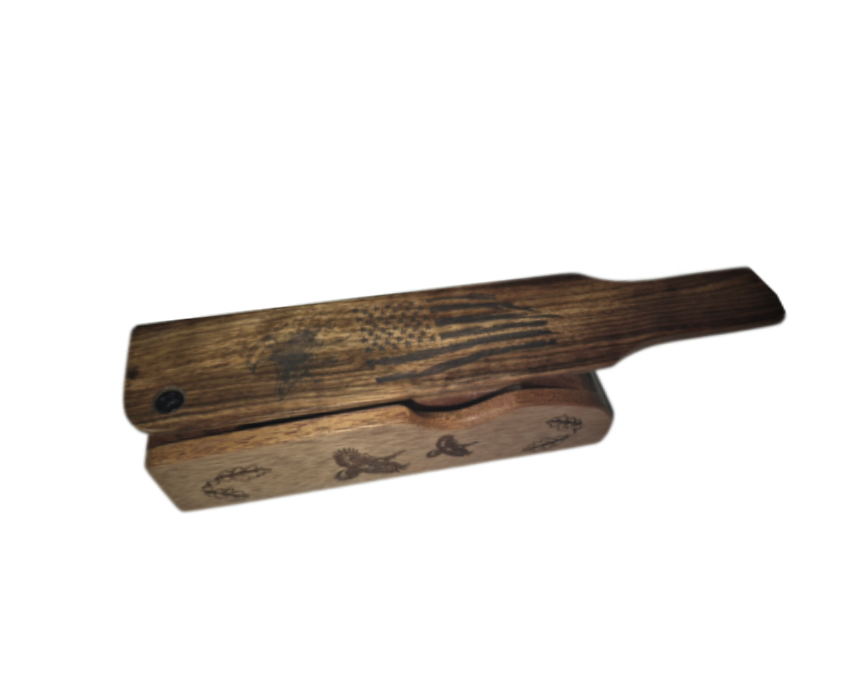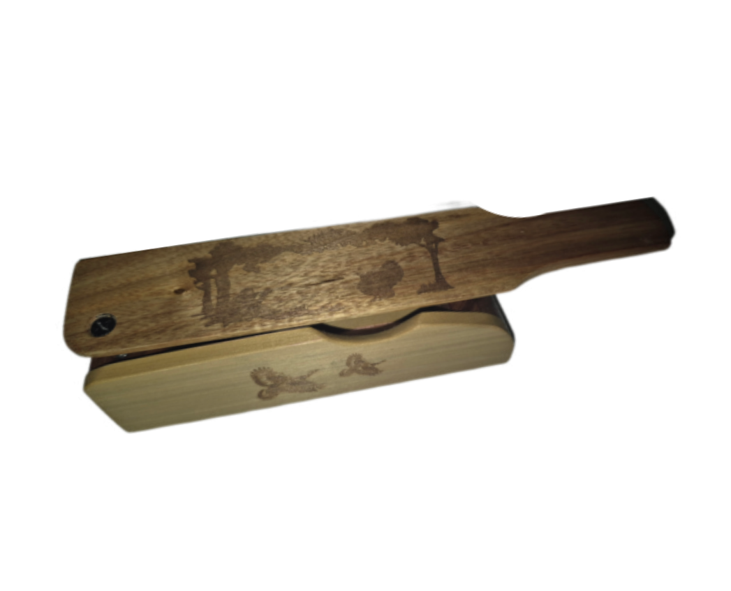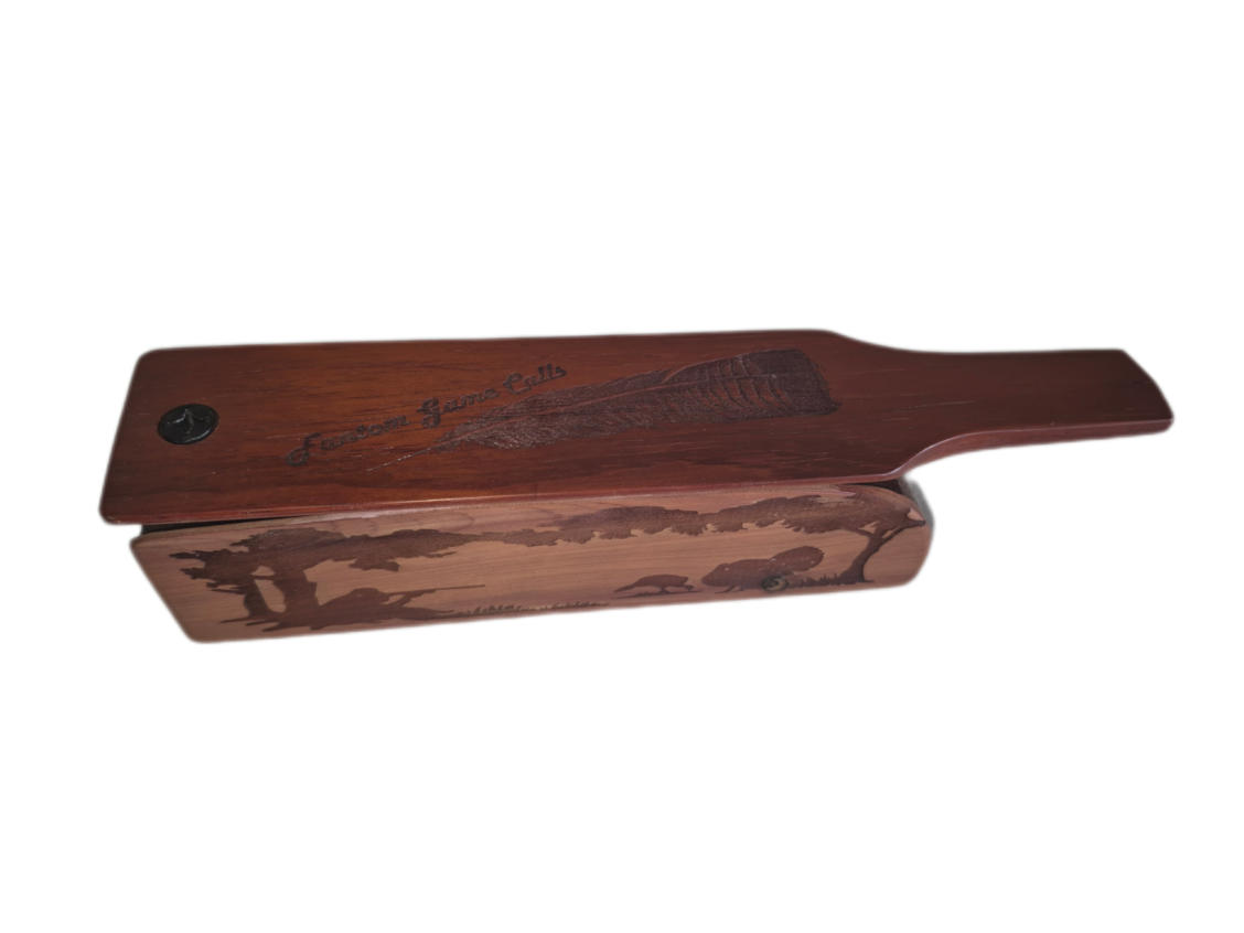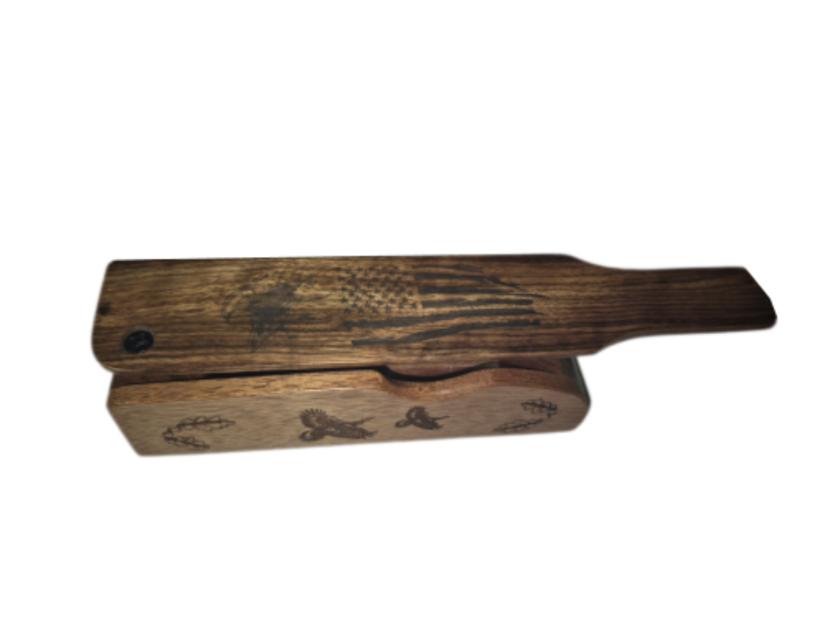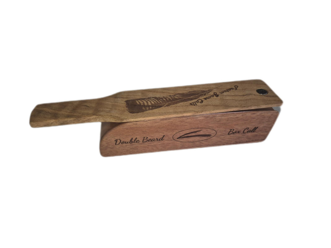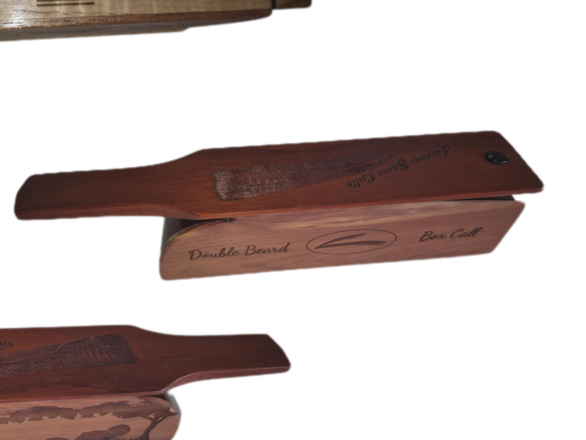 The Double Beard This is our best selling box call! Made and tuned to sound great in the field! Each side is tuned to a different pitch giving some variation to calling sequences.Calls come with laser engraving on all sides and engineer’s chalk. Paddle 1 ⅞”x9”, Box 1 ⅞”x6”